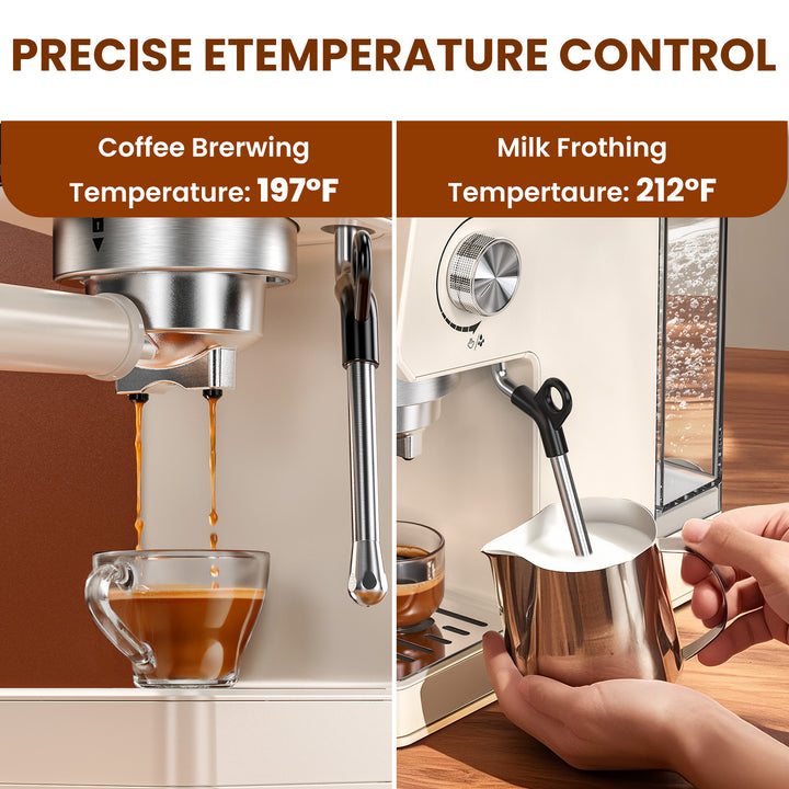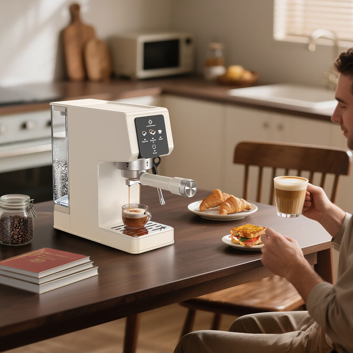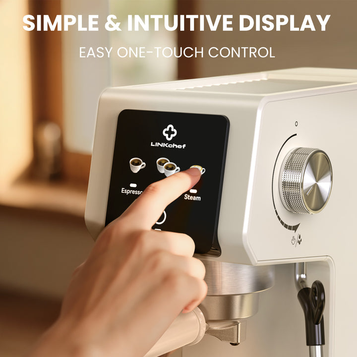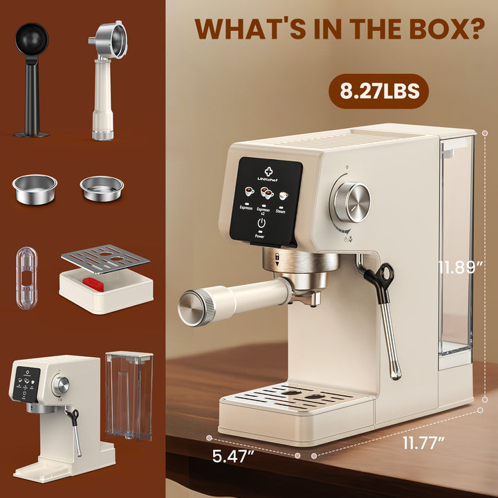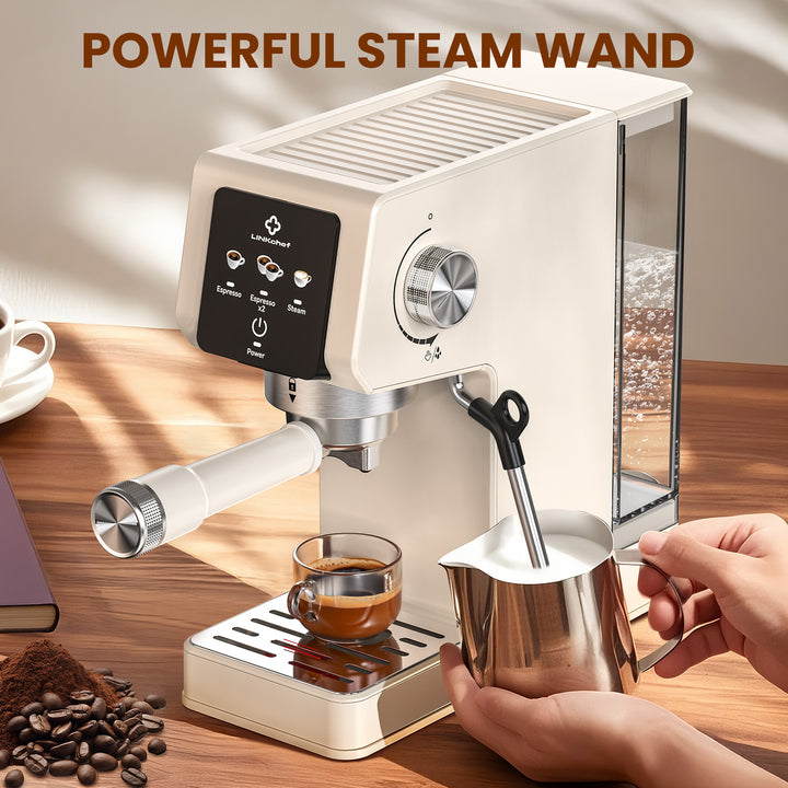 LINKChef Espresso Machine 20 Bar, Professional Espresso Maker with Milk Frother Steam Wand, Beige